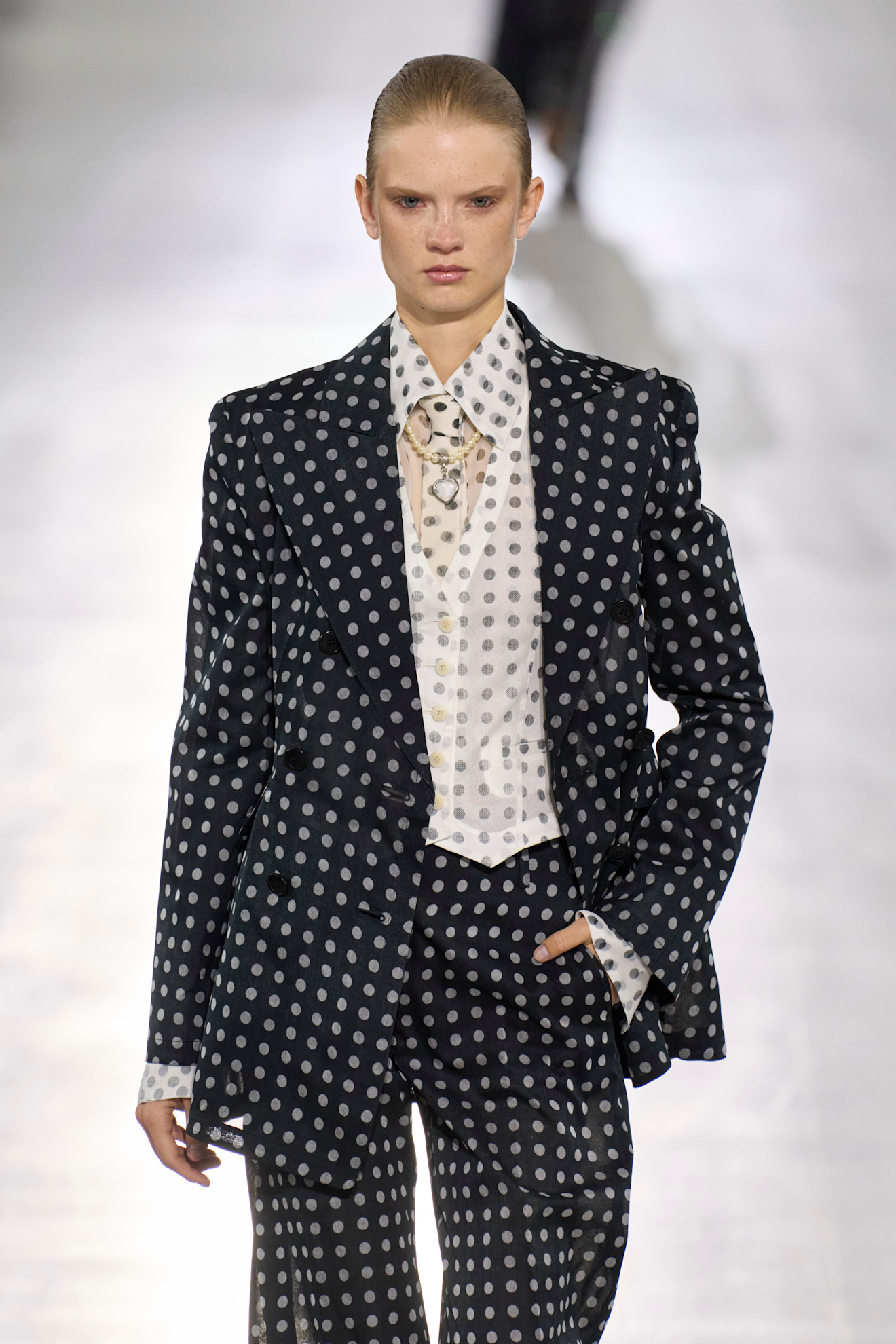 Puantiyeler bu sezonun önde gelen trendlerindendi. Ancak bu zamansız klasikler etki alanını bırakmıyor, günler geçtikçe kendi yerlerini sağlama almaya devam ediyorlar. Ermanno Scervino defilesinde bu yazın “trend” diye adlandırdığımız birçok moda hareketini görüyoruz. Buna bandanalar da dahil, kravatlı gömlekler de…